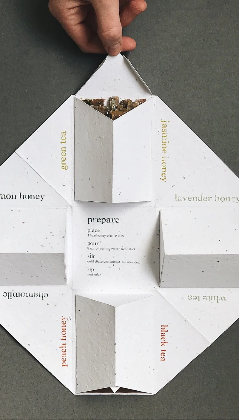 Poppi Tea is a modern beverage company looking to change the way we think about packaging and waste in the food industry. By combining sustainable packaging materials and processes with a revolutionary form of pressed tea and preserved honey, Poppi tea aims to eliminate all packaging waste while providing the customer with high quality tea and sweetener pairings.